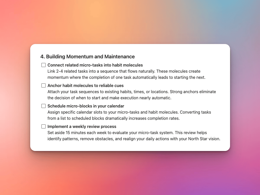 The truth? Momentum doesn’t come from tackling everything at once. It comes from shrinking big things into small, doable steps you can act on today.